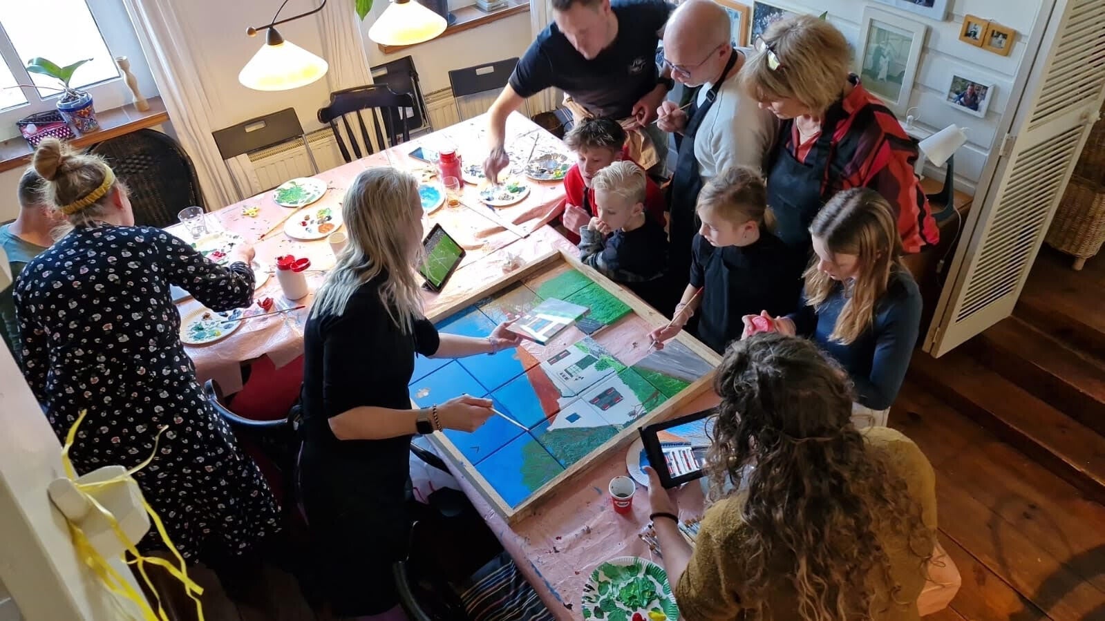 Maak met je hele familie van 16 kleine schilderijtjes 1 schilderij als herinnering, of met je bedrijf als teambuilding, heb je een andere gelegenheid in gedachten dan kan dat waarschijnlijk ook, informeer naar de mogelijkheden.