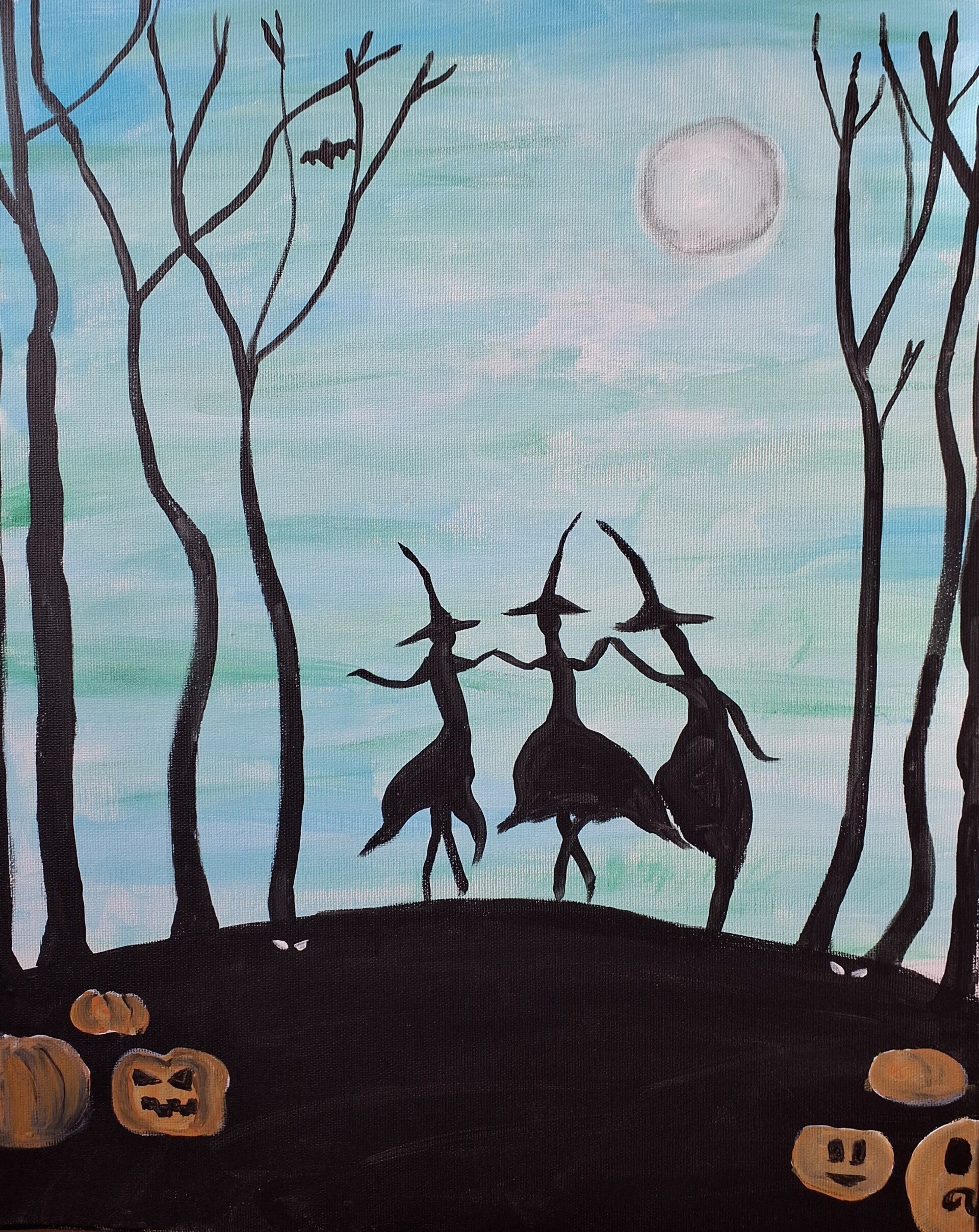 Dompel jezelf onder in de fascinerende wereld van 'Schilderen dansende heksen'. Dit is een unieke schilderworkshop waarbij we in ongeveer twee uur tijd een sfeervol kunstwerk creëren. Geniet van het moment dat je deze mooie kleuren op het doek zet, onder een gezellige en inspirerende sfeer. Het is de perfecte gelegenheid om even te ontsnappen aan de dagelijkse routine en je creativiteit de vrije loop te laten.
